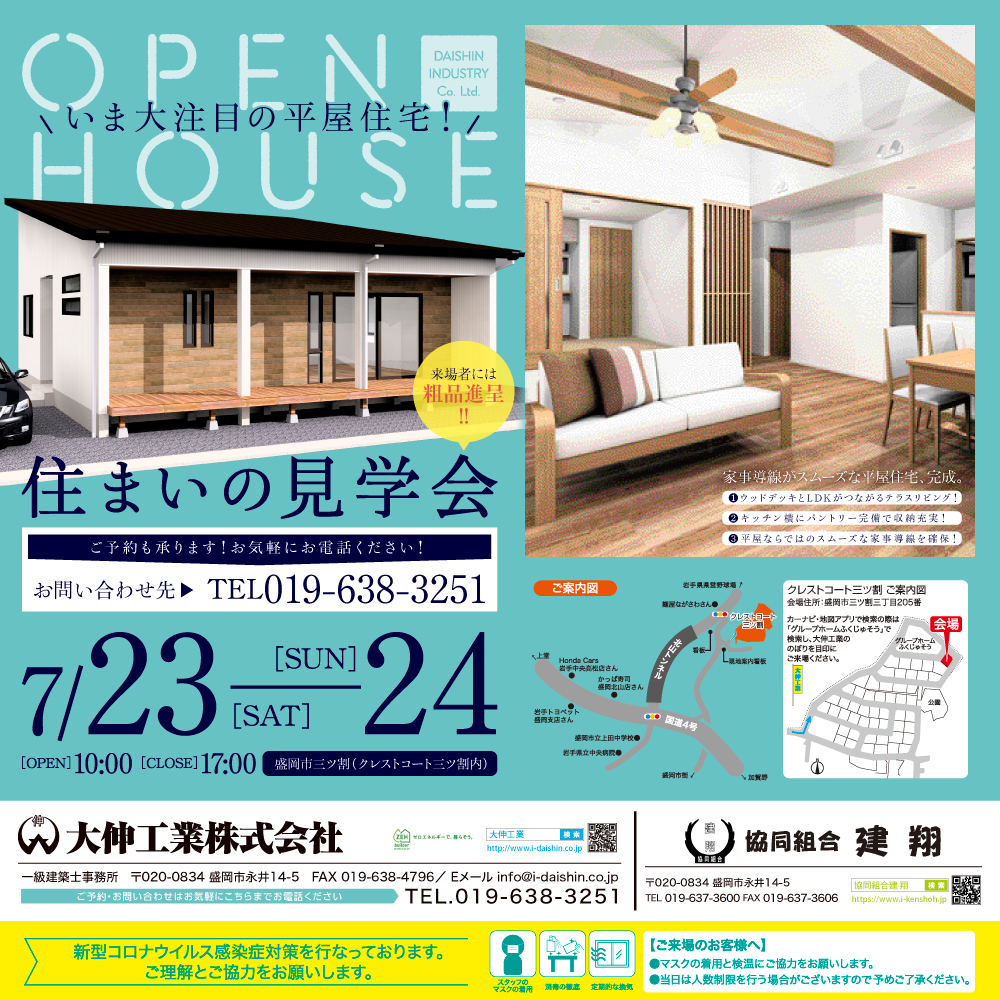7月23日(土)24日(日)住まいの見学会開催