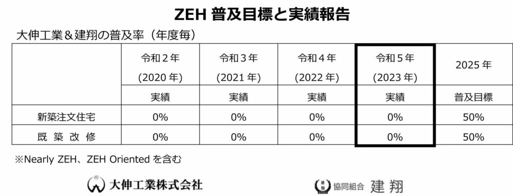 大伸工業および協同組合 建翔では、2016年よりネット・ゼロ・エネルギー・ハウス(ZEH)支援事業のZEHビルダーに登録しております。 2021年度からの普及実績の報告及び2025年度のZEH普及目標の掲載をいたします。