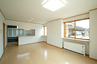 蓄熱式暖房機を窓の張り出し下部に納めることでスッキリとしたリズム感を。