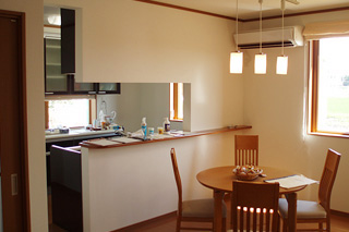 対面式キッチンにカウンターを設けることにより、毎日の食事の支度をスピーディに。
