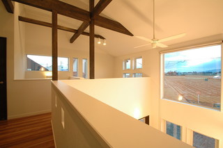 化粧梁などで吹き抜けスペースにも重厚感を。